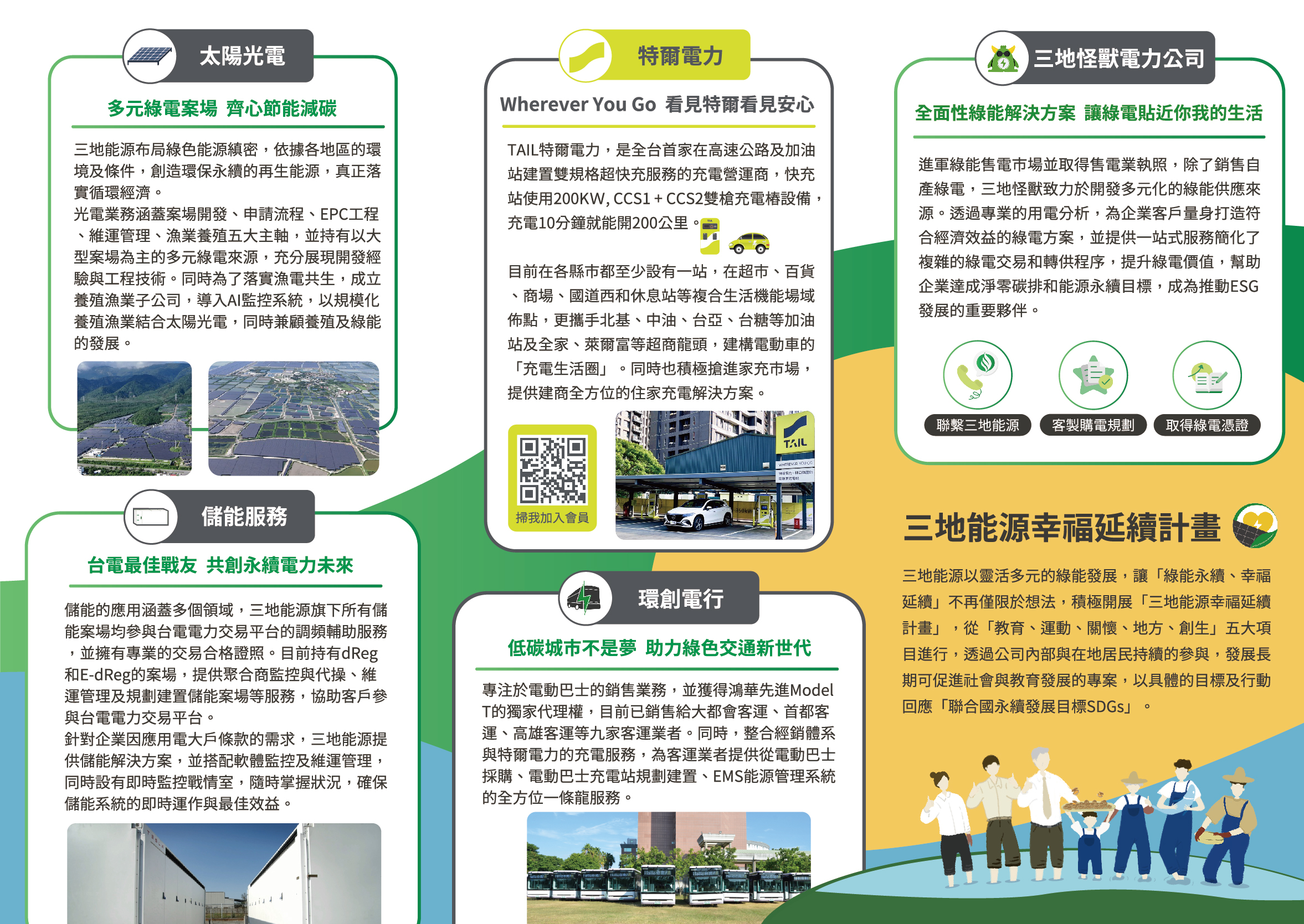 因應RE100全球再生能源倡議,2021年成立「三地怪獸電力股份有限公司」進軍綠能售電市場並取得售電業執照,除了銷售自行產出的綠電之外,更積極開發多性的綠能供電來源,協助企業用戶多樣性用電分析並規劃最符合其經濟效益之綠電方案。